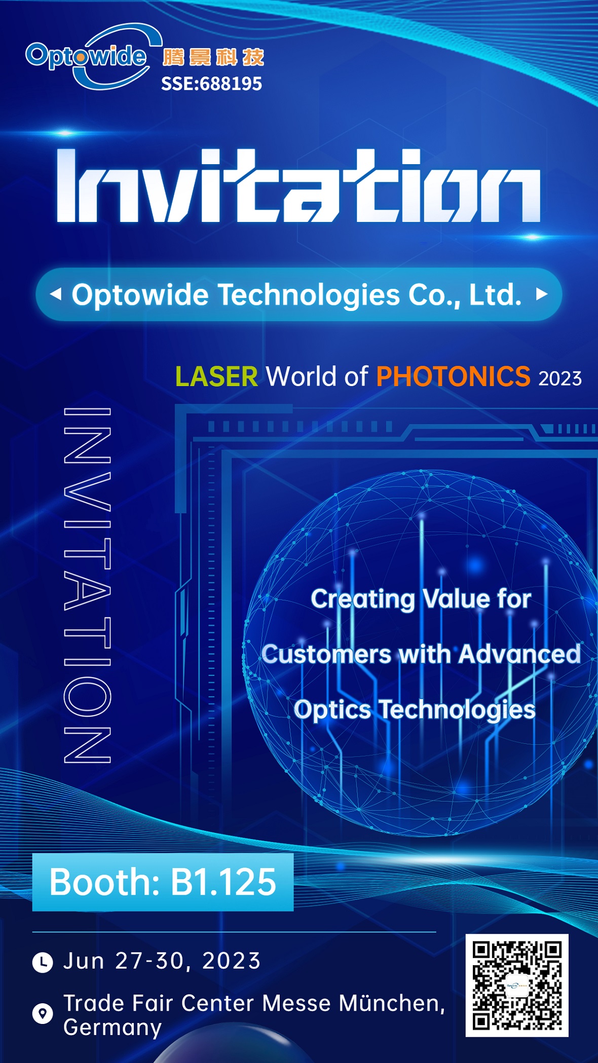 凤凰联盟官方网站将参加6月27日-6月30日在德国穆尼黑的2023年德国慕尼黑光电展。凤凰联盟官方网站展位号B1.125,将展出光通信、光纤激光、生物医疗、AR、车载等应用领域的各类产品,欢迎各位现场参观交流。